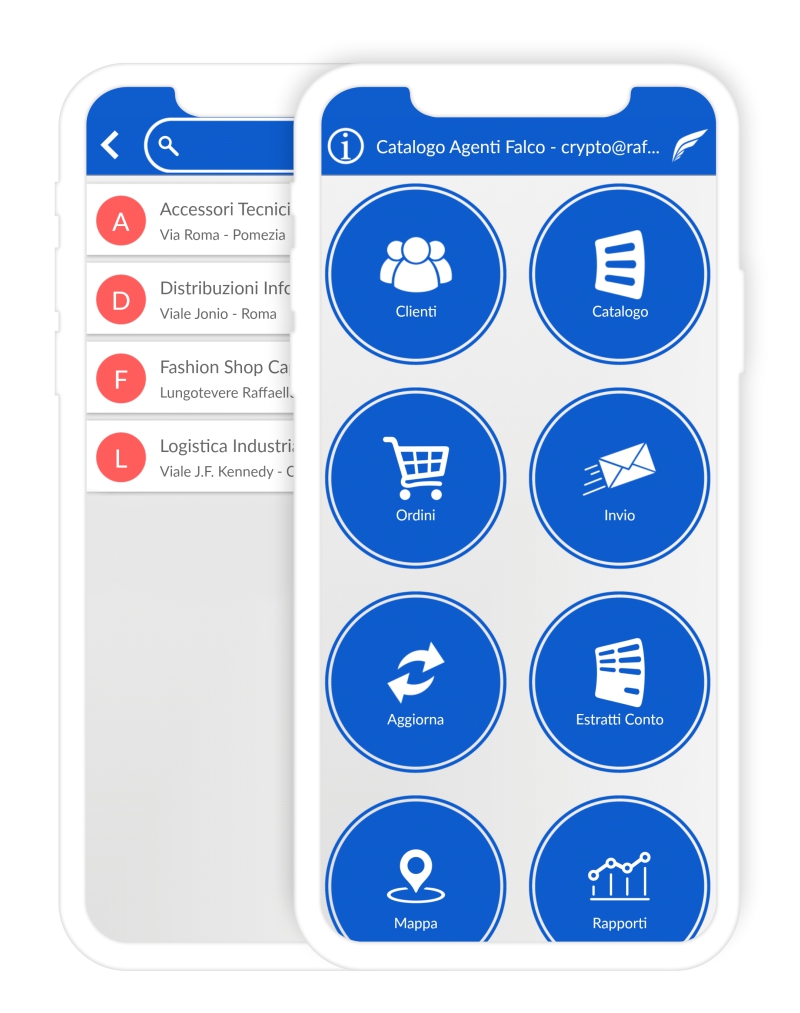 Catalogo Agenti Falco è l’app per titolari, agenti e clienti B2B, integrata con il tuo gestionale che ti permetterà di gestire ed ampliare la tua rete di vendita.