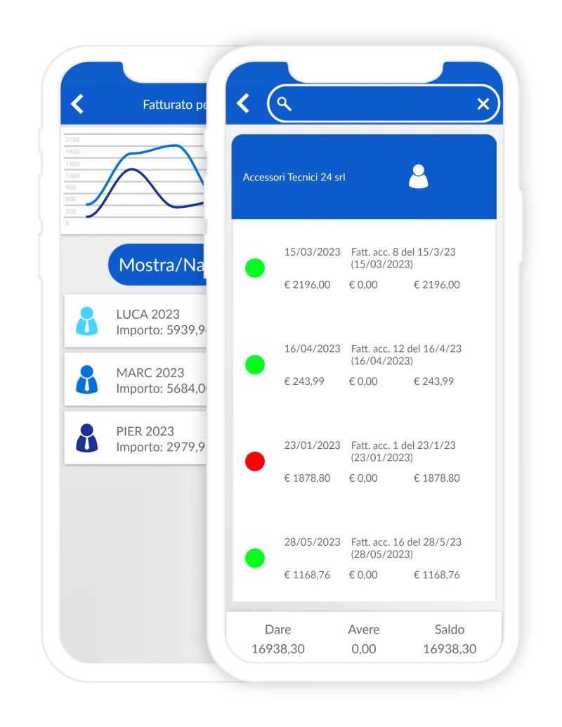 I titolari dell’azienda possono consultare l’elenco dei clienti con i relativi estratti conto e avere grafici e rapporti sulle vendite.