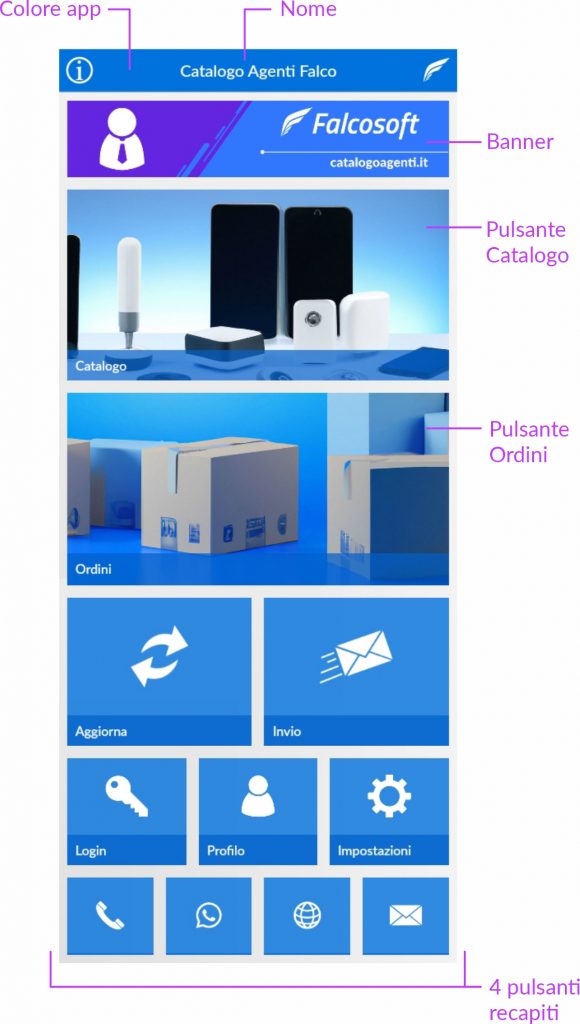 La versione B2B dell’app inoltre offre la possibilità di applicare diverse personalizzazioni grafiche che consentono di presentare meglio il catalogo adeguandolo al brand dell’azienda:
