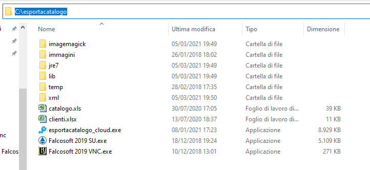 1) È opportuno mettere la cartella in un percorso breve, ad esempio “C:\EsportaCatalogo” in quanto tenerla sul desktop può causare problemi di autorizzazioni