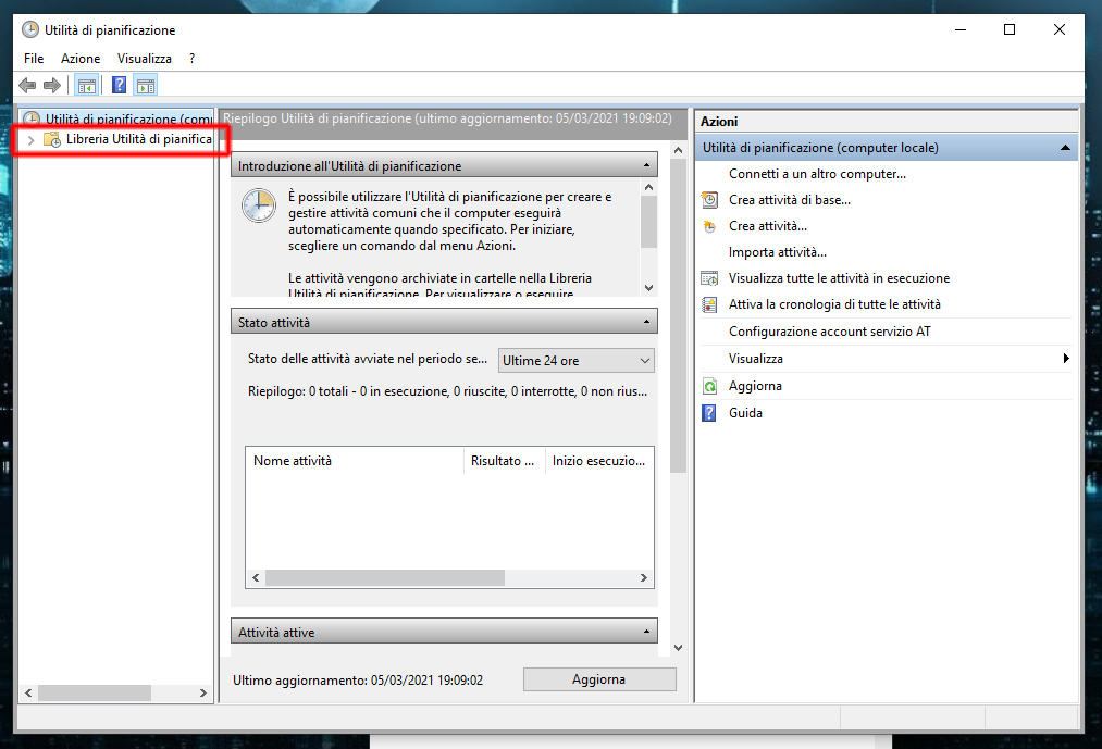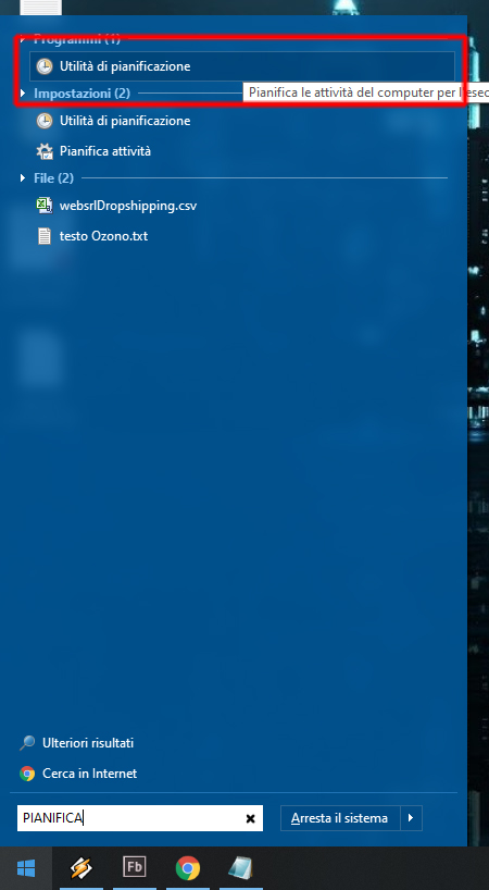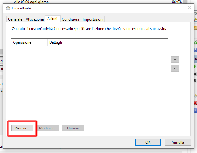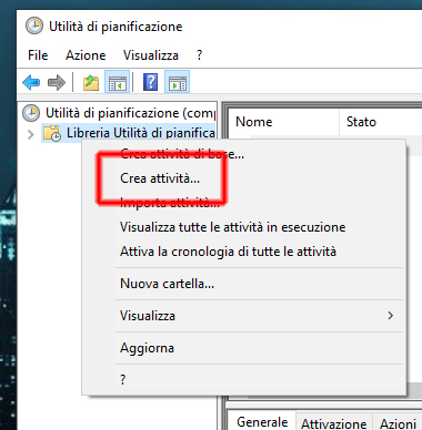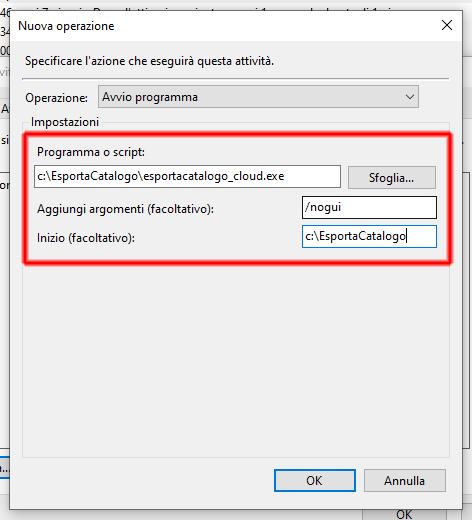 Creazione di un’operazione pianificata nello strumento di pianificazione di Windows per eseguire in automatico il programma “esportacatalogo_cloud”.