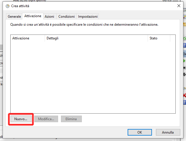 10) Premi “ok” in basso nella finestra “Crea Attività” e a questo punto potrebbe chiederti nome utente e password di accesso a Windows (solo se è stato selezionato “Esegui Indipendentemente Dalla Connessione Degli Utenti”)